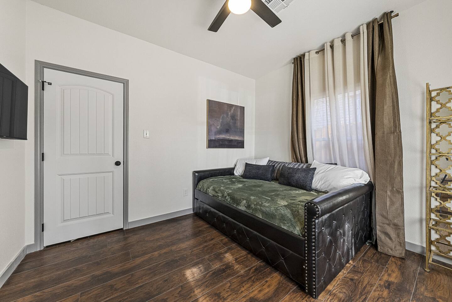 Amenities ●Sauna ●Hot Tub ●Firepit area ●Game Room in Garage w Pool Table (No AC/HEAT) ● Pack and Play w/ High Chair ●5 minutes/1.4 miles to the Silos, Mclane Stadium and Cameron Park & Zoo ●Wi-Fi with Netflix, Disney +, Hulu, Amazon Prime+ Youtube TV ●King Bed in 1st Bd ●King Bed in 2nd Bd ●Queen Bed in 3rd Bd ●Trundle has a Full bed on top and Twin Bed in the bottom in 4th Bd ●Fully Stocked Kitchen w coffee machine, pots, pans, basic seasoning, mugs, plates ●Washer & Dryer ●Fully fenced w/ Self Check In ●Gas Burner Grill ●Pet friendly with $50 one time pet fee